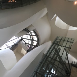 Guggenheim Museum is spectacular, colossal and avant-garde, clad in glass, limestone and titanium with its innovative and expansive airy interior filled with some natural light.